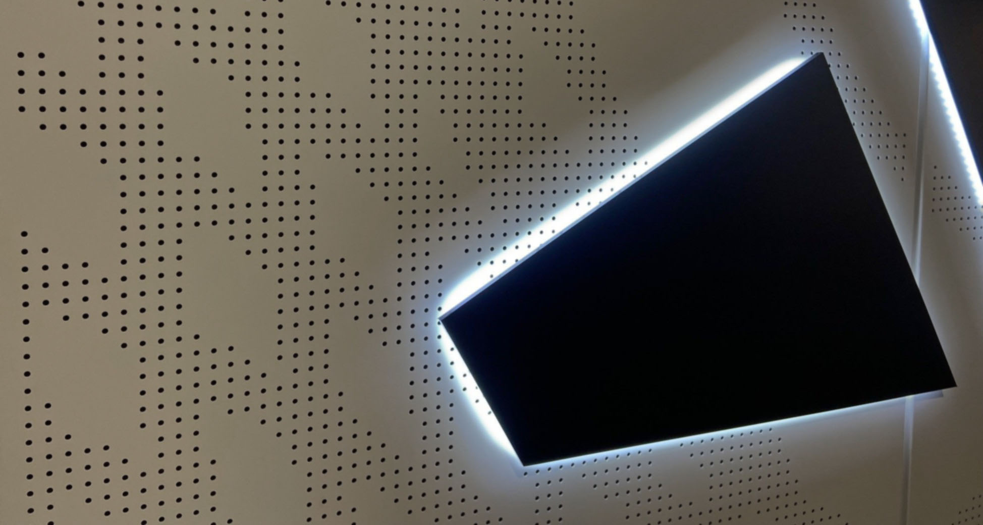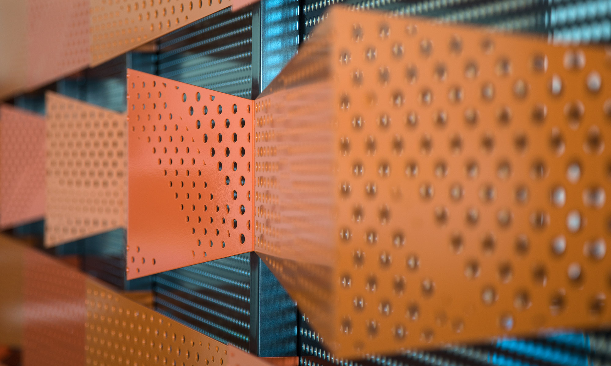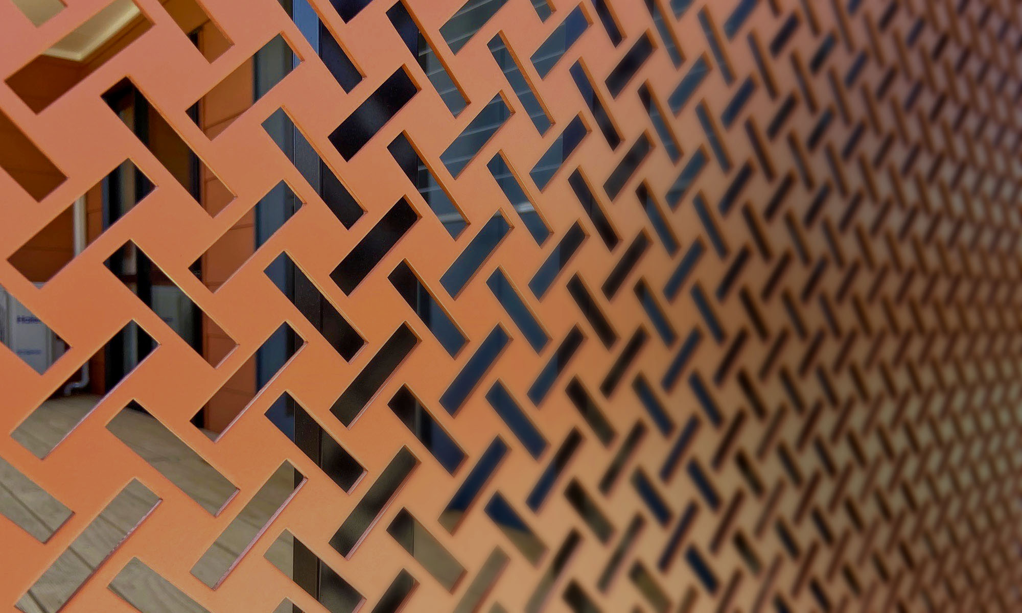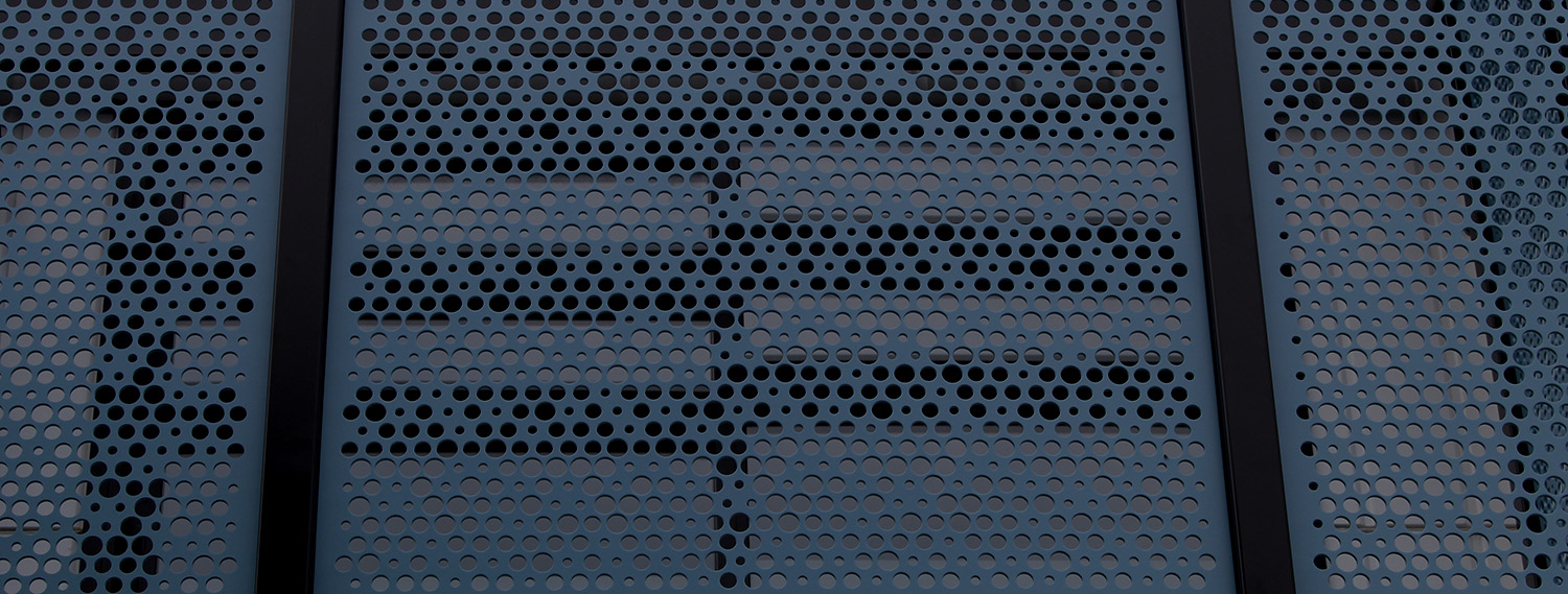Striking decorate Hive perforated metal pattern on a series of Aluminium panels.