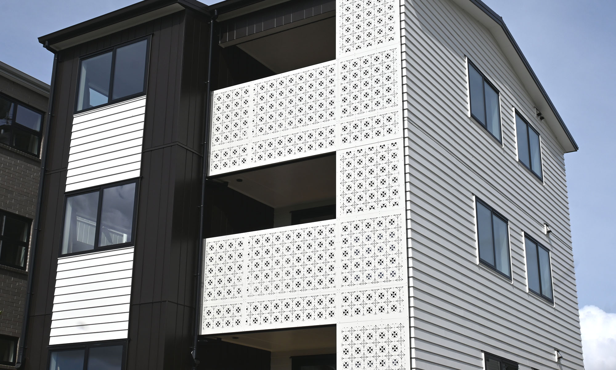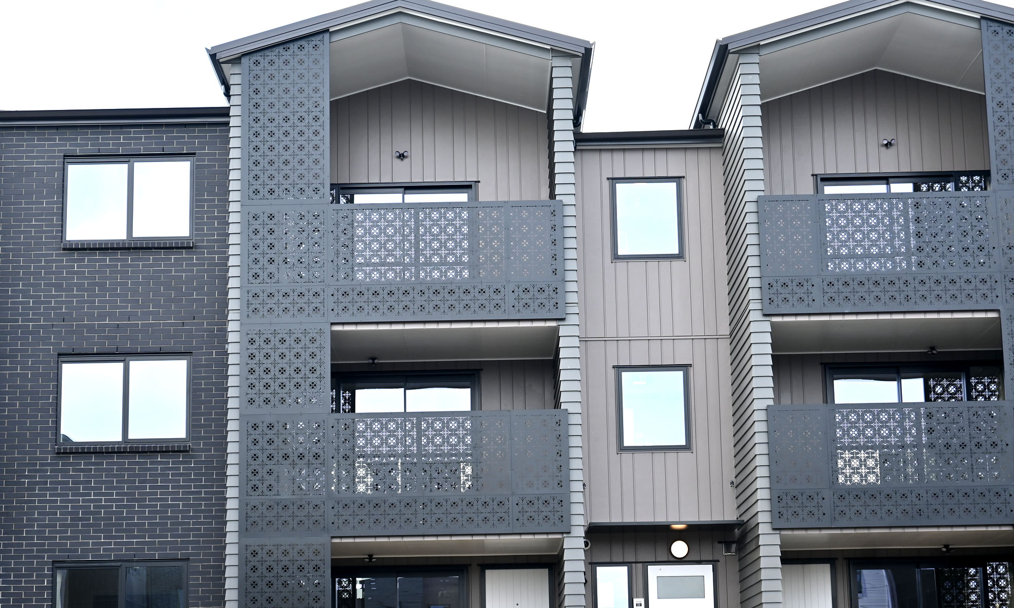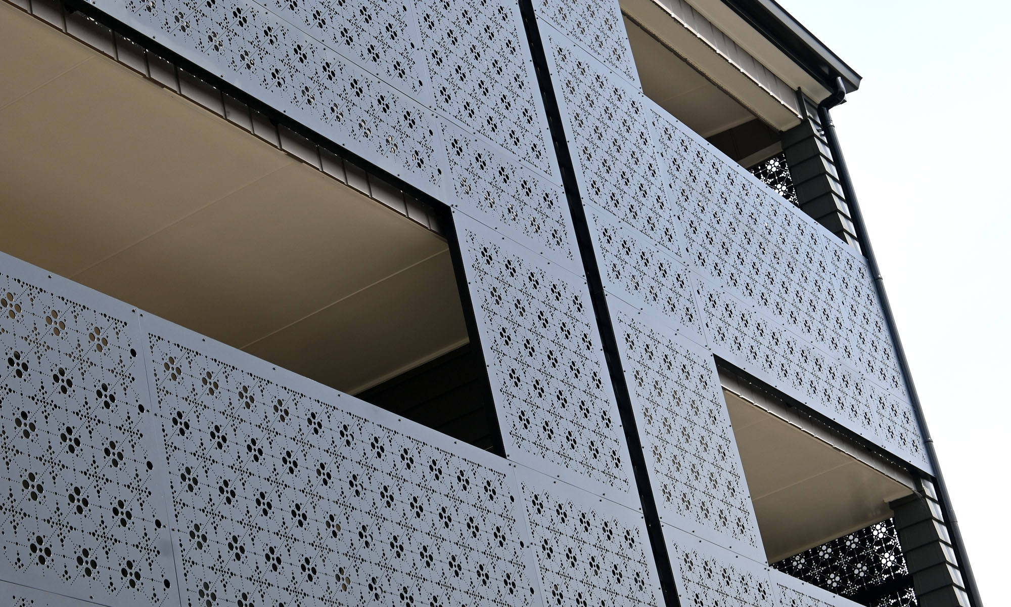 A new social housing apartment project in Guys Road Auckland makes striking use of our popular, eye-catching Marrakech pattern on a series of 3.0mm Aluminium panels with a stylish, contemporary powder coated finish. Marrakech is part of our Ready to Use range – a selection of prepared designs that make finding the right look for your project quick and simple. We can then punch panels specifically to the dimensions required, ensuring a clean, consistent and precise end result while reducing lead times.