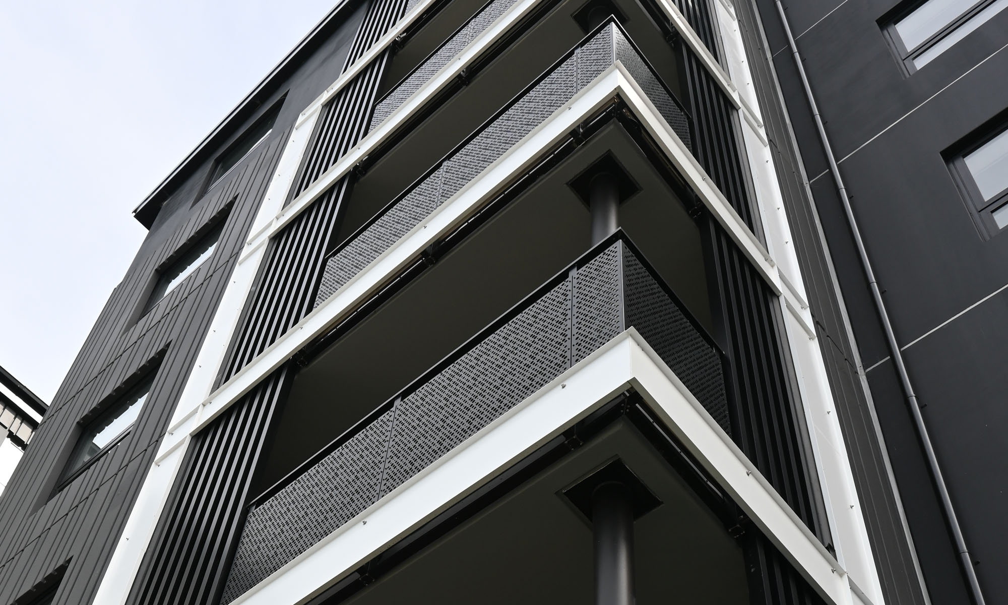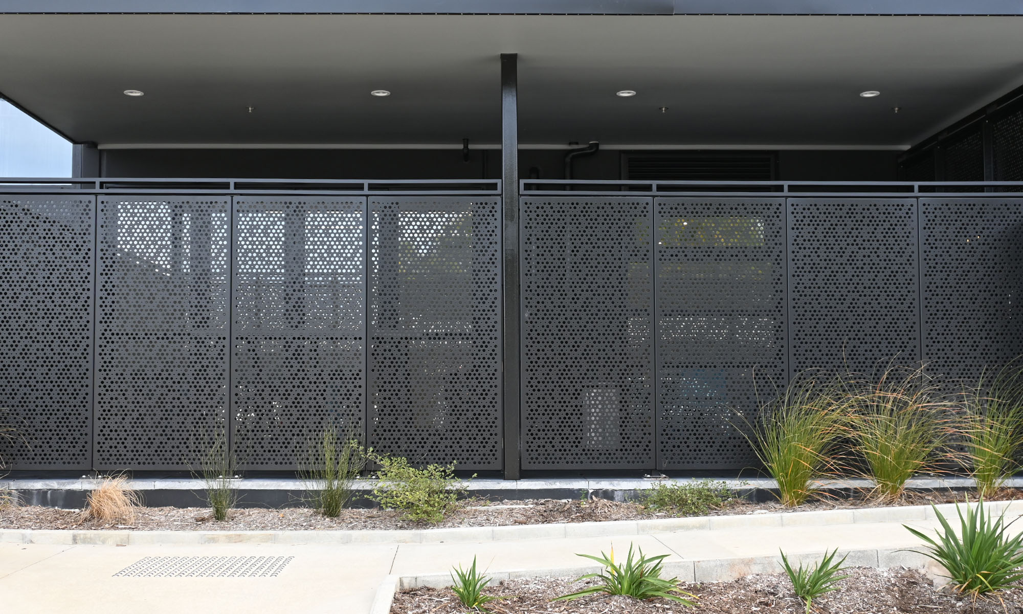 This stylish social apartment project on Lake Road, Auckland creates a stylish, modern aesthetic using our Hive perforated design on Aluminium panels which were then given a bold, contemporary powder coated finish. Hive is part of our Ready to Use range – a selection of prepared designs that make finding the right look for your project quick and simple. We can then punch panels specifically to the dimensions required, ensuring a clean, consistent and precise end result while reducing lead times.