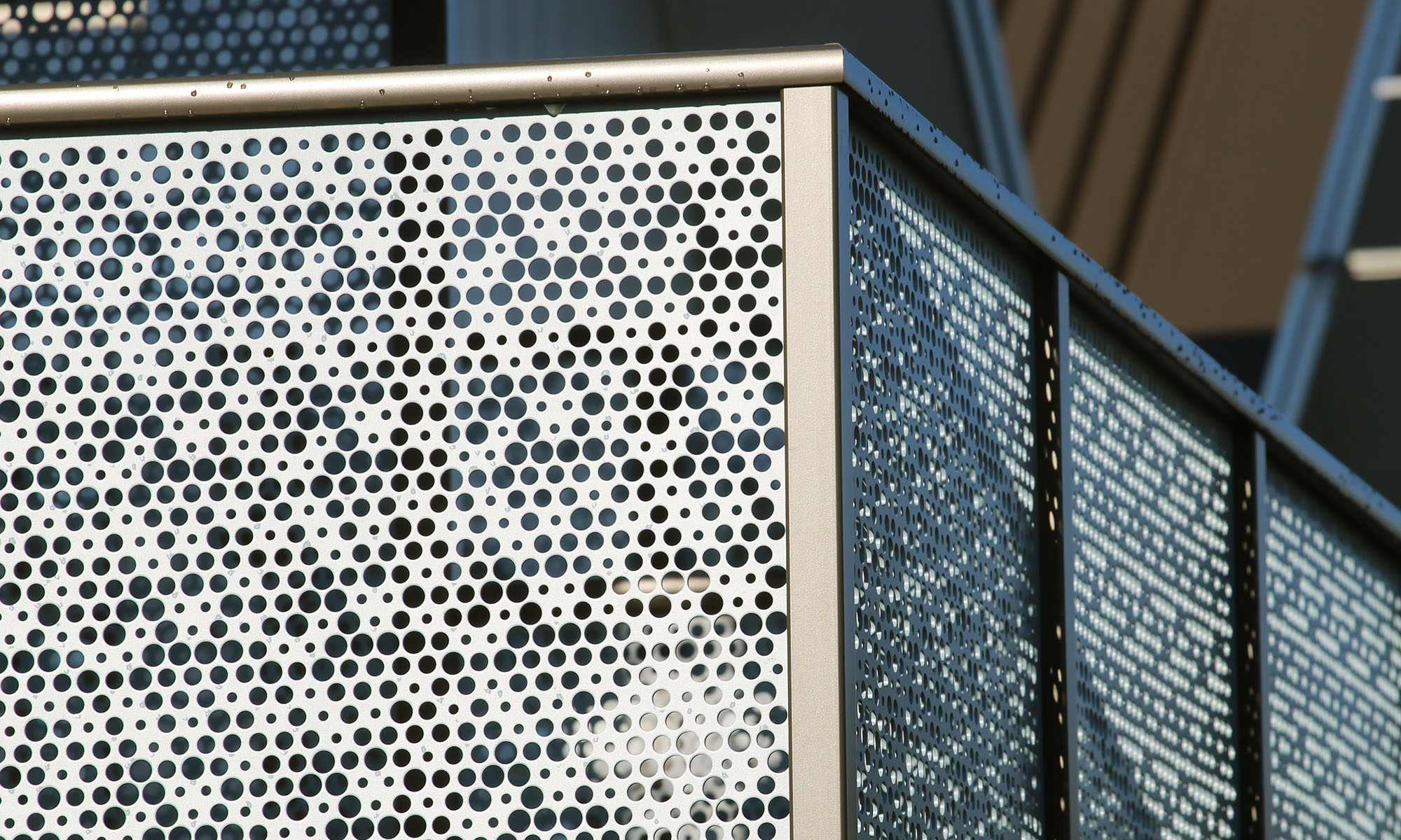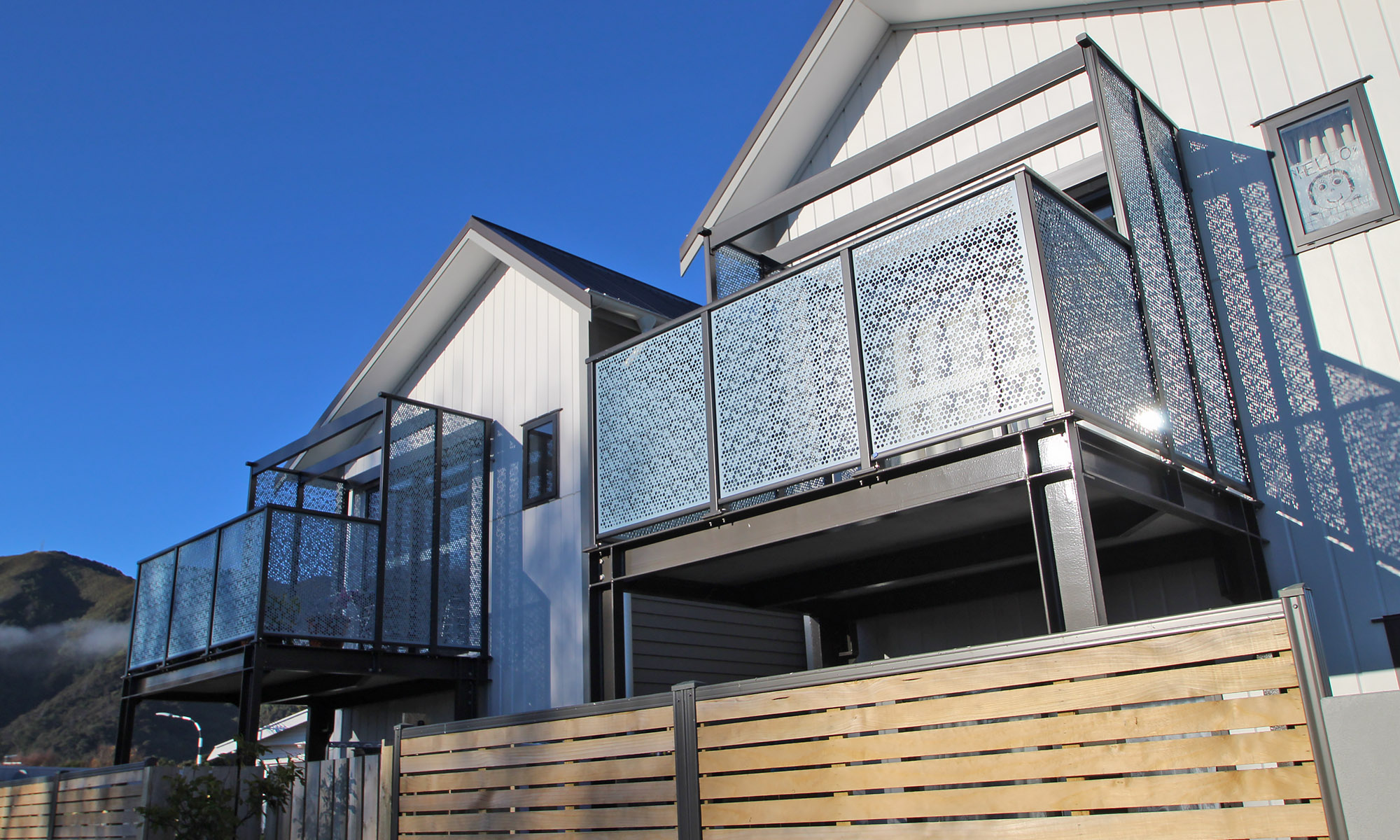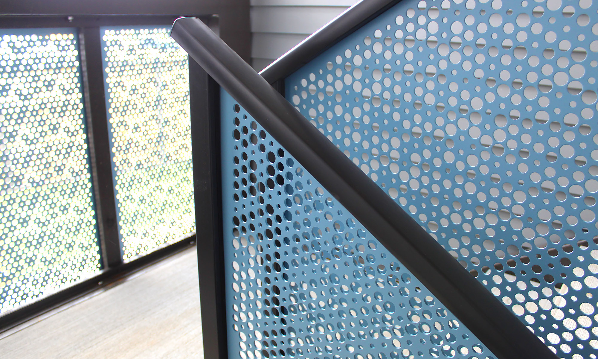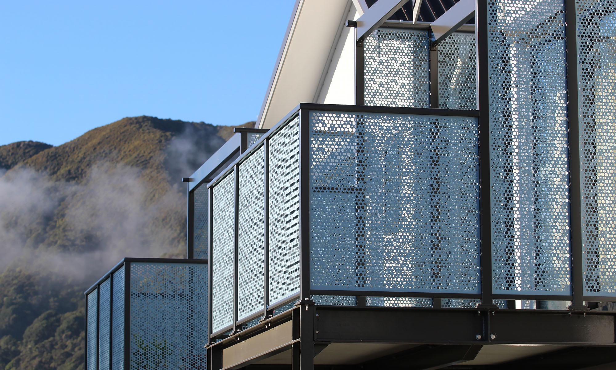 Whites Line East’s social housing development in Lower Hutt makes stunning use of our Hive pattern on these Aluminium panels in vibrant blue powder coated finish. Creating both a beautiful aesthetic to the buildings as well as ensuring privacy and safety for the occupants, Hive is a fantastic choice. This pattern is part of our Ready to Use range – a selection of prepared designs that make finding the right look for your project quick and simple. We can then punch panels specifically to the dimensions required, ensuring a clean, consistent and precise end result while reducing lead times.